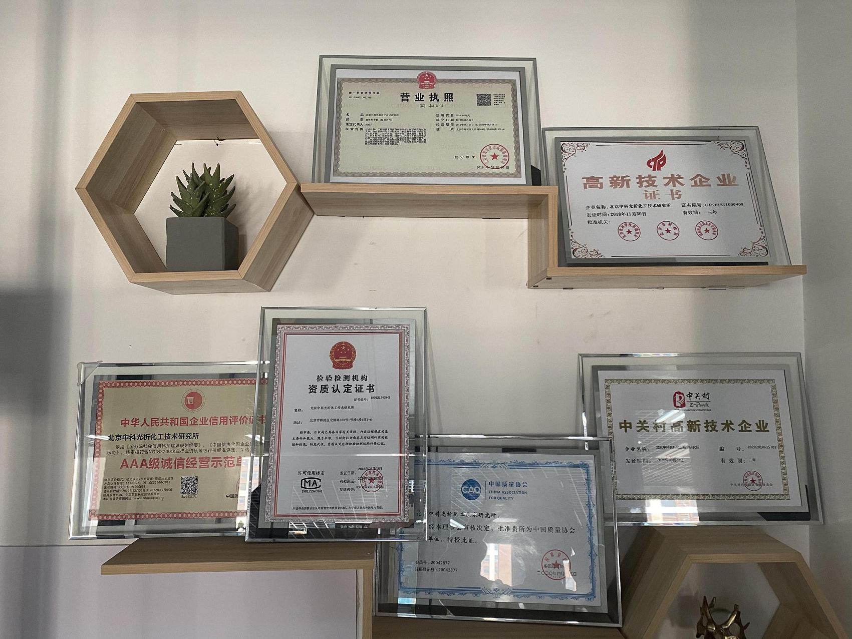 Beijing Zhongke optical analysis Chemical Technology Research Institute (hereinafter referred to as Sinochem Institute) is a collective owned unit, which is a chemical technology research institute focusing on scientific research and testing. Sinochem adheres to the combination of basic research and application research, and the combination of application research and technology transformation, and develops into a comprehensive research institute with the main characteristics of "task with discipline". With the approval of relevant national departments, it has now become a third-party analysis and test technical service unit and obtained CMA qualification certification. Services such as R & D design, analysis and detection, test and verification, common processing, information and intellectual property rights were carried out to provide public services for innovation of science and technology-based enterprises. With the support of the government innovation fund, the exchange was rated as a national high-tech enterprise.